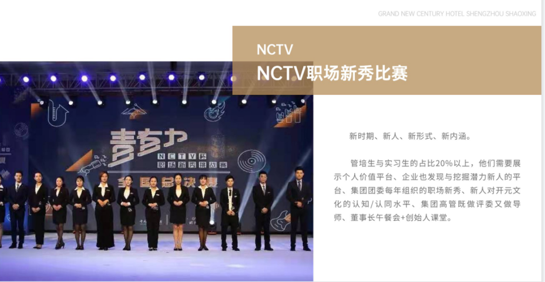 嵊州开元名都大酒店通过设置月度、季度展示活动,致力于让每一名毕业生同学通过4-6个月的时间,锻炼他们的综合素养,使他们更加愿意表达自己,实现由内而外的转变及成长!