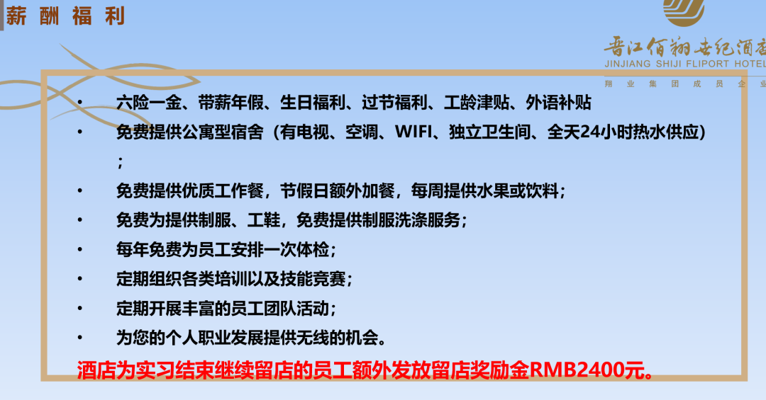 我们晋江佰翔世纪酒店的人才培养计划也是相当的完善,有利于同学们在这里提高能力,成就自我。